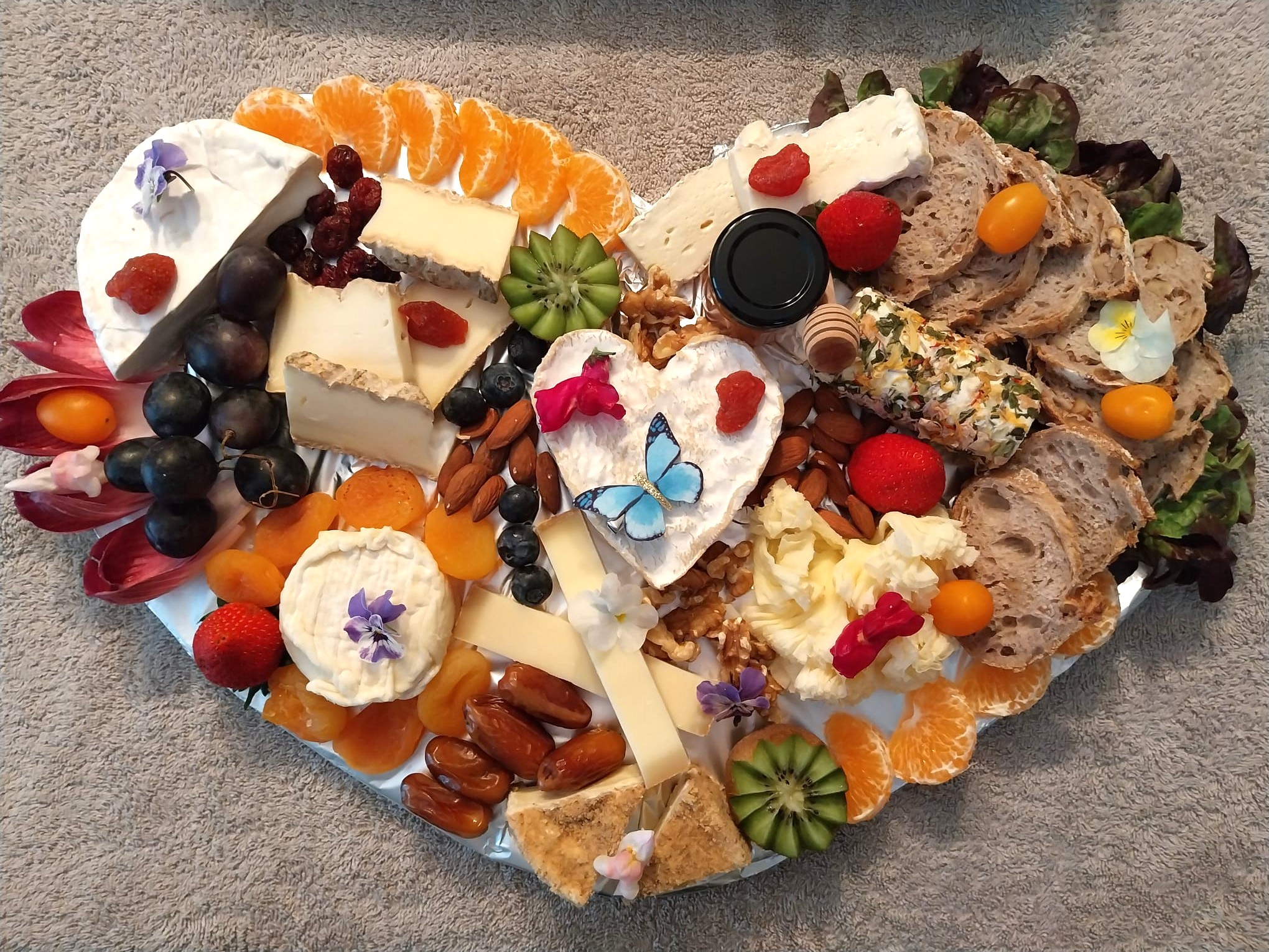 Farandole de fromages, à pâtes et laits différents, agrémentés de fruits de saison et miel de montagne.