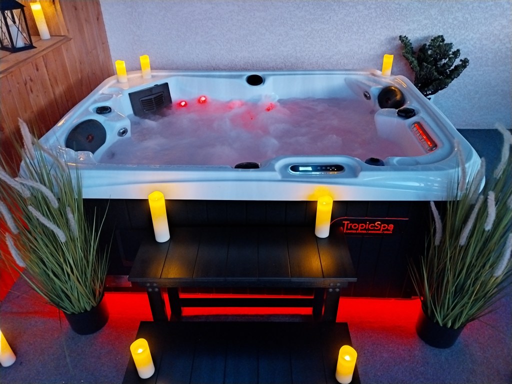 Les bulles relaxantes vous enveloppent dans un doux massage, Les jets ont pour objectif principal de toujours masser le corps afin d’offrir aux utilisateurs détente et soulagement. Les jets sont conçus pour réduire les tensions dans les muscles et les articulations en les relâchant et en améliorant la circulation sanguine. Les Ondes lumineuses diffusées dans l’eau pour une atmosphère propice à la détente : le chromathérapie. Tout autour de vous, la nature, créant un cadre de sérénité absolue. Notre jacuzzi vous offre bien plus qu’un simple moment de détente : c’est une véritable évasion.
